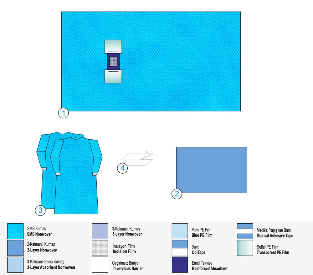 Висококачествен стерилен нетъкан текстил и ламинат. Висока абсорбционна способност и непромокаемост. |