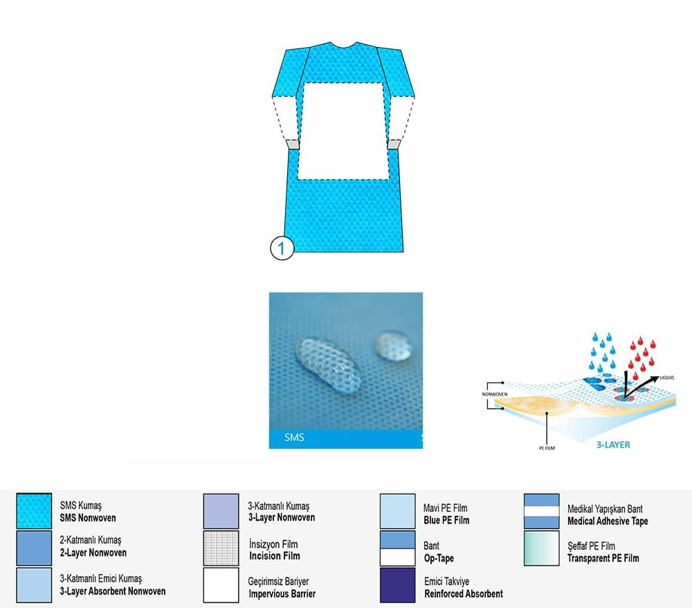 Висококачествен стерилен нетъкан текстил и ламинат. Висока абсорбционна способност и непромокаемост. 40 гр. SMS/SMMS |