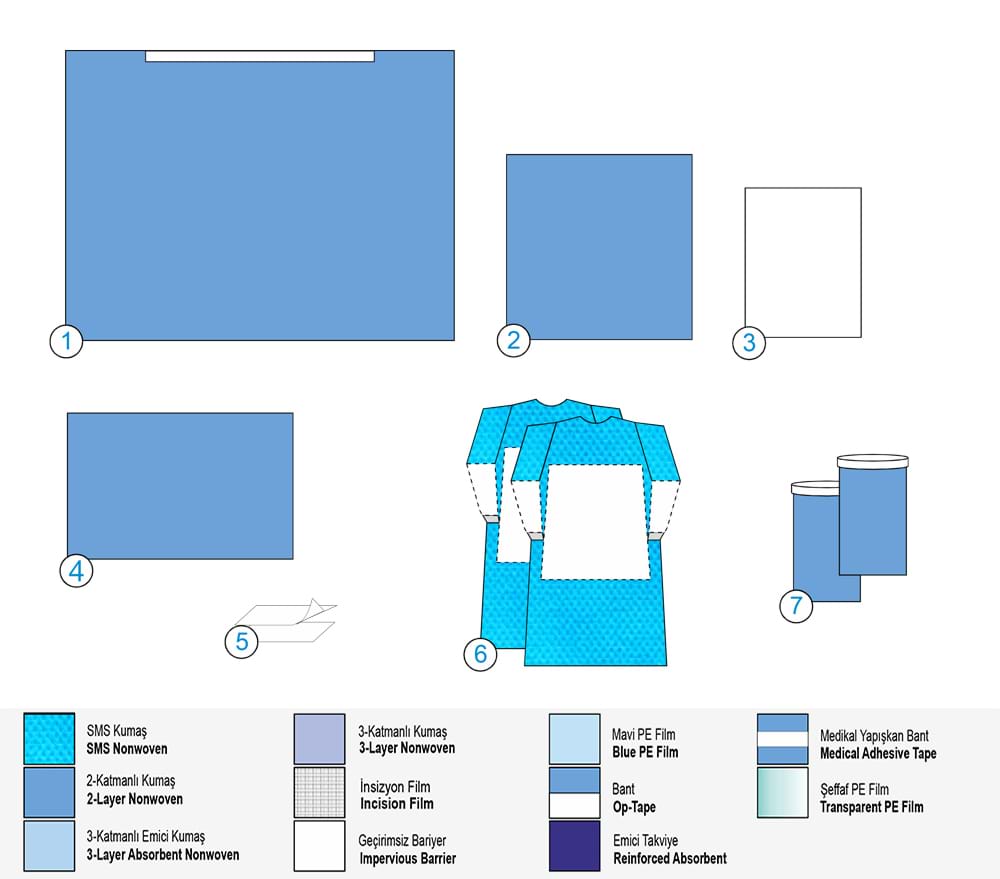 Висококачествен стерилен нетъкан ламиниран текстил. Висока абсорбционна способност и непромокаемост. |