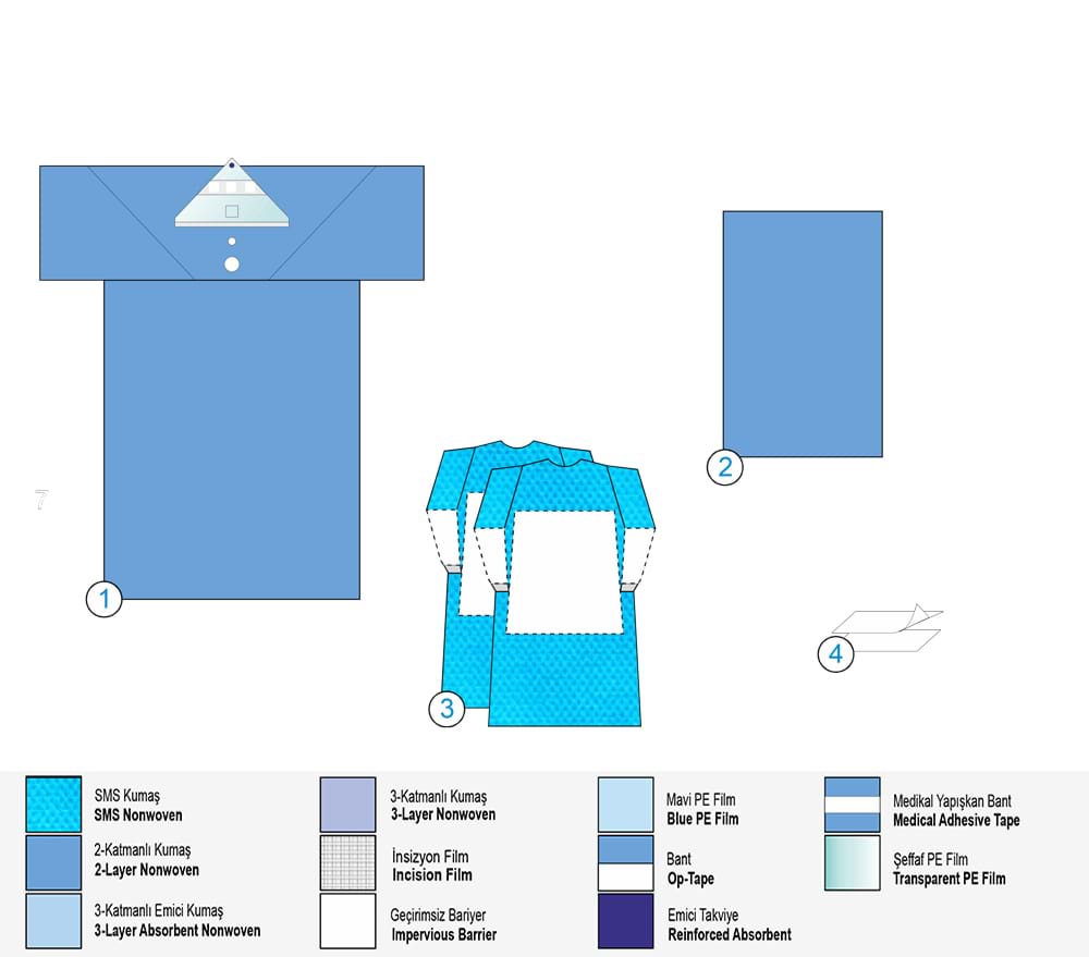 Висококачествен стерилен нетъкан ламиниран текстил. Висока абсорбционна способност и непромокаемост. |