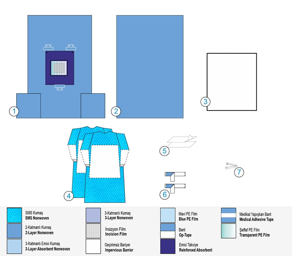 Висококачествен стерилен нетъкан ламиниран текстил. Висока абсорбционна способност и непромокаемост. |