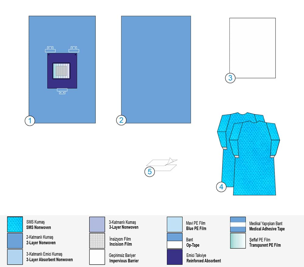 Висококачествен стерилен нетъкан ламиниран текстил. Висока абсорбционна способност и непромокаемост. |