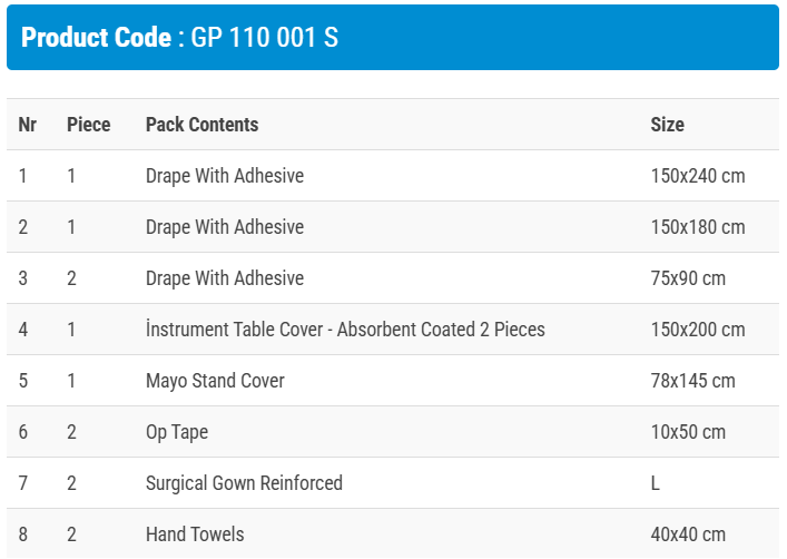 Възможна изработка на Стерилен операционен сет по ваши изисквания. |