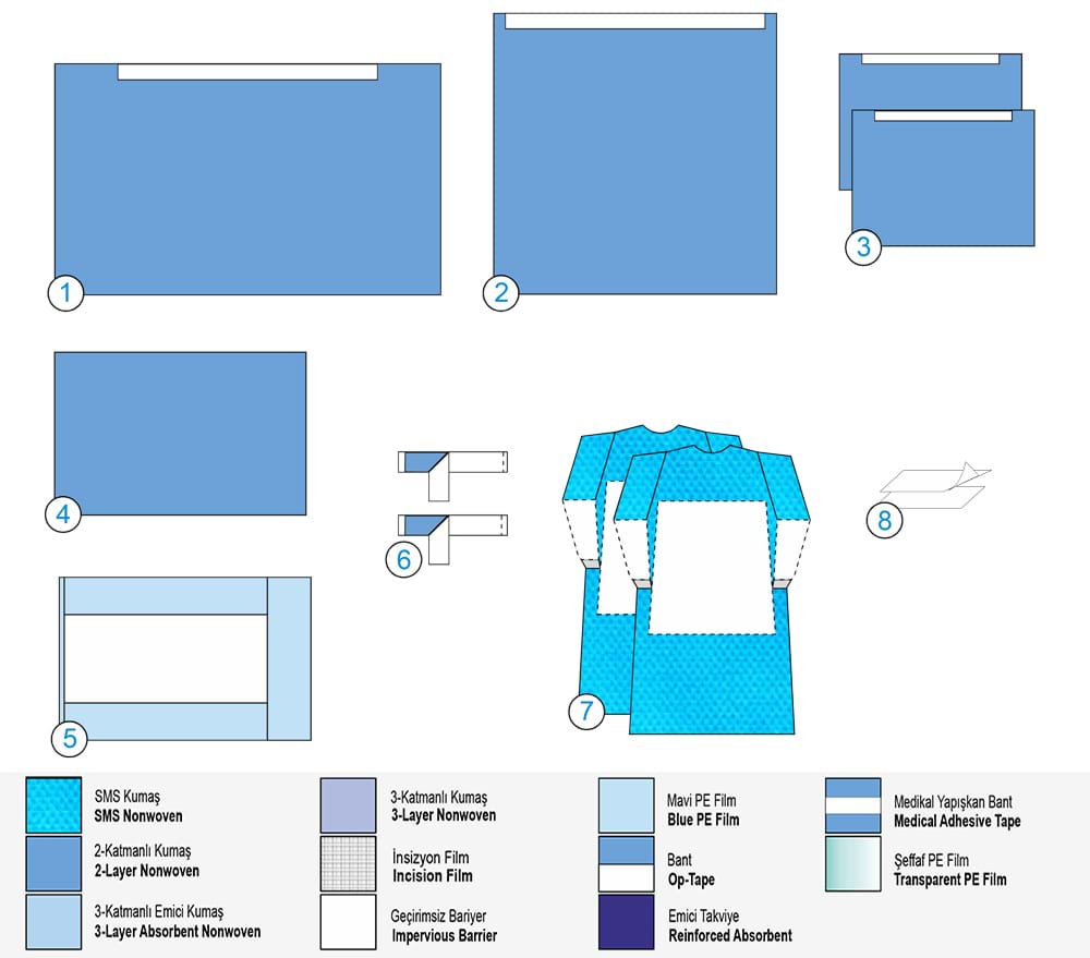 Висококачествен стерилен нетъкан текстил и ламинат. Висока абсорбционна способност и непромокаемост. |
