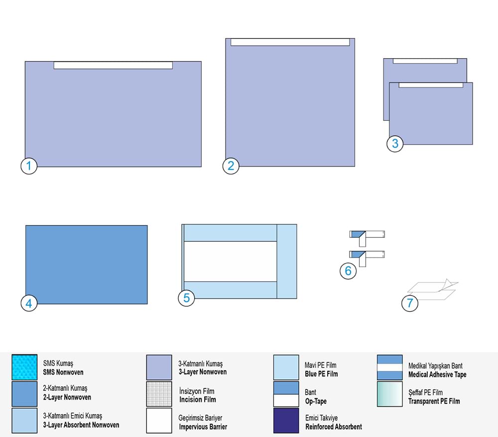 Висококачествен стерилен нетъкан текстил и ламинат. Висока абсорбционна способност и непромокаемост. |