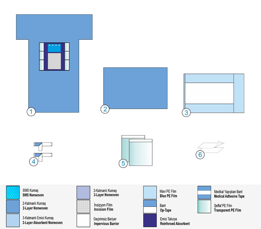 Висококачествен стерилен нетъкан текстил и ламинат. Висока абсорбционна способност и непромокаемост. |